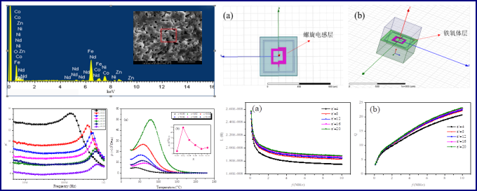 ●制备了微波NiZnCo铁氧体,系统研究了工艺、离子掺杂和异质材料复合等对电磁性能的影响,为应用于高频电感器、电容器、滤波器等元器件提供了重要材料基础;并仿真获得了具有较高的电感和品质因数平面螺旋电感模型。