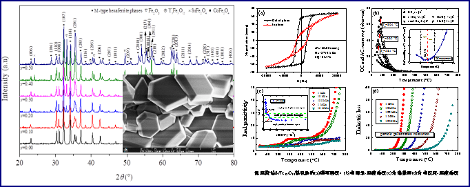 ●合成了系列低温烧结六角晶M型锶铁氧体,经过工艺优化和配方优化,材料的烧结温度可以控制在850~900°C范围内,烧结密度、饱和磁化强度、内禀矫顽力和电学性能参数符合器件化应用范围。
