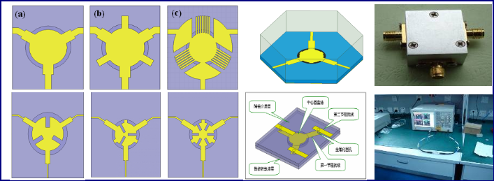 ●设计了微波LTCF环行器,优化了器件的叠层片式化结构和三维布线方式,得出了器件频率特性与材料性能和结构尺寸之间的关系;开发了S-X波段多种微带铁氧体环行器的设计、制作和调试,包括高隔离度器件、低损耗器件、大带宽器件以及综合性能优良的器件,主要应用于雷达、电子对抗、遥测遥控、微波测量及微波通信等领域。