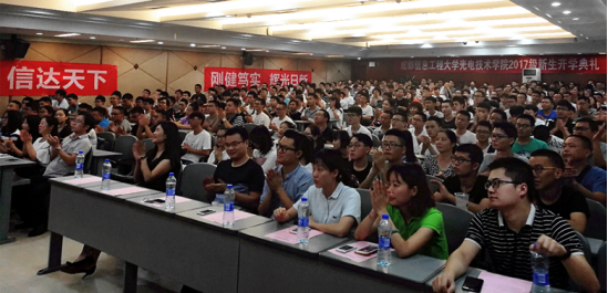 在学术报告厅隆重举行2017级新生开学典礼。党总支书记王嵩、副院长杨定宇、院长助理程科、党政办、学工办、教学办、各系(副)主任、实验室主任以及全体辅导员出席典礼。2017级276名新生及家长代表参加了开学典礼,典礼由学工办主任童强主持。