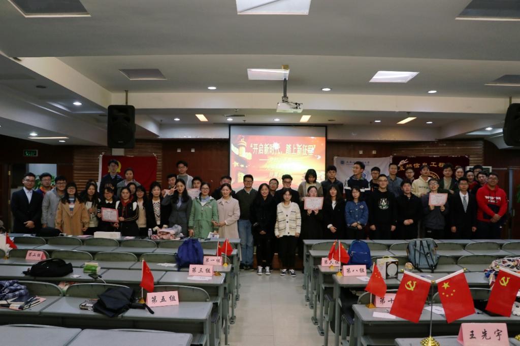 学生党支部于11月15日晚19:00在学术报告厅举办了"开启新时代,踏上新征程"党知识竞赛决赛,参赛人员为初赛晋级的两院十组参赛人员,到场人员有品色堂
