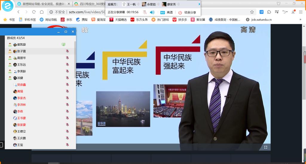 团委老师田晓旭组织预备党员、入党积极分子以及院团委、学生会代表共同观看2021年春季学期“开学第一课”暨“四川百万大学生同上‘四史’大课”。同学们从学史明理、学史增信、学史崇德、学史力行学习党史,收获颇丰。