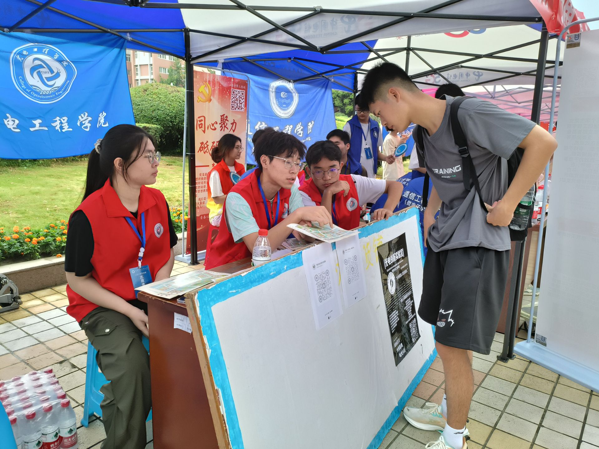 学生会的工作人员在校园多处摆放了清晰的指示牌。尽管天气炎热,青志协光电分会的学长学姐们依然热情地为新生答疑解惑,讲解品色堂