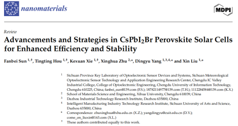 为第一署名单位发表了题为 “Advancements and Strategies in CsPbI2Br Perovskite Solar Cells for Enhanced Efficiency and Stability” 的研究论文。品色堂