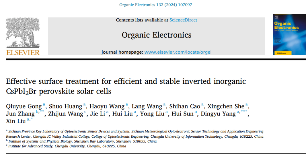 新能源材料与器件团队刘欣老师作为通讯作者在《Organic Electronics》期刊上以品色堂
